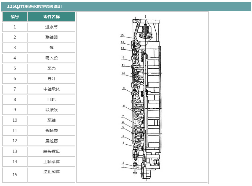 125QJ井用潛水電泵産(chan)品特點 1、電機、水泵(beng)一體,潛入水中運(yùn)行,安全可靠。