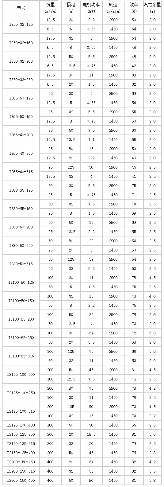 IS單級離心泵的(de)性能參數: