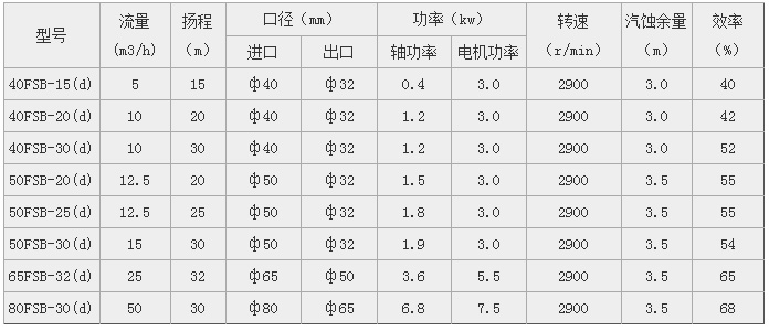 技術參數(shu): FSB型氟塑料合(he)金化工泵