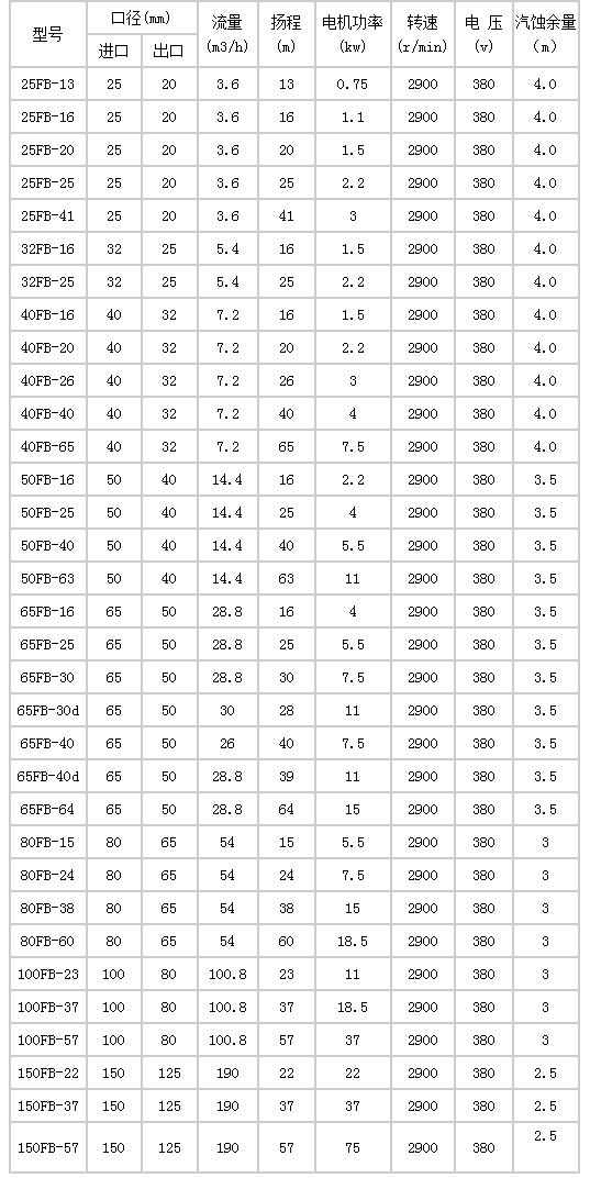 三(sān)、技術參數: FB、AFB型耐(nài)腐蝕離心化工(gong)泵